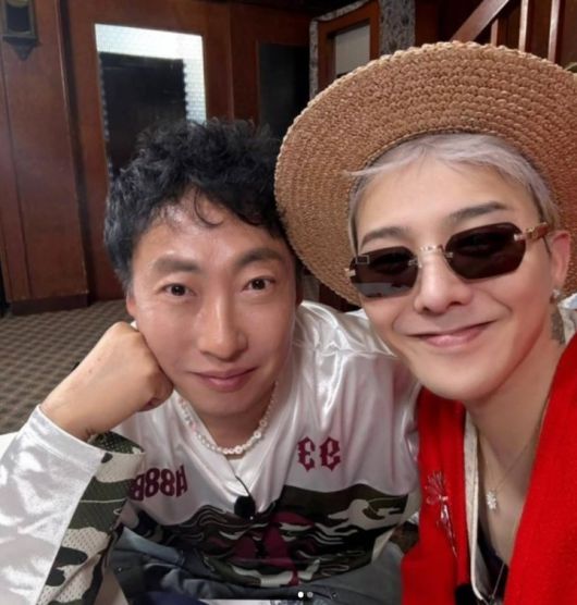 공개된 사진 속 박명수와 지드래곤은 카메라를 향해 밝게 미소 짓고 있다. 특히 박명수가 지드래곤의 모자를 장난스럽게 착용한 모습이 눈길을 끈다.