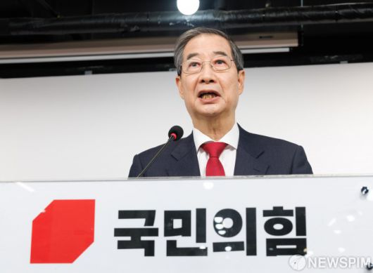 [서울=뉴스핌] 윤창빈 기자 = 국민의힘에 입당한 한덕수 대선 예비후보가 10일 오후 서울 여의도 국민의힘 중앙당사에서 현안관련 긴급 기자회견을 하고 있다. 2025.05.10 pangbin@newspim.com