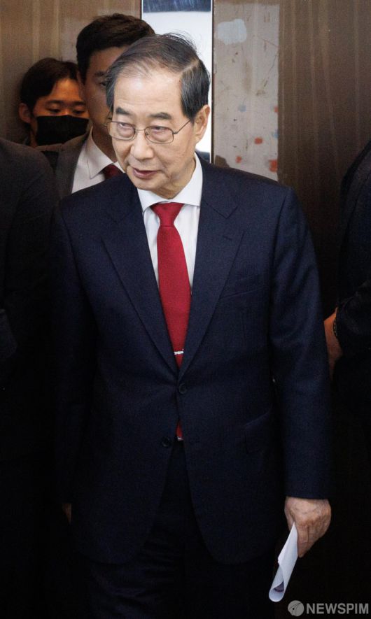 [서울=뉴스핌] 윤창빈 기자 = 국민의힘에 입당한 한덕수 대선 예비후보가 10일 오후 서울 여의도 국민의힘 중앙당사에서 현안관련 긴급 기자회견을 하기 위해 들어서고 있다. 2025.05.10 pangbin@newspim.com