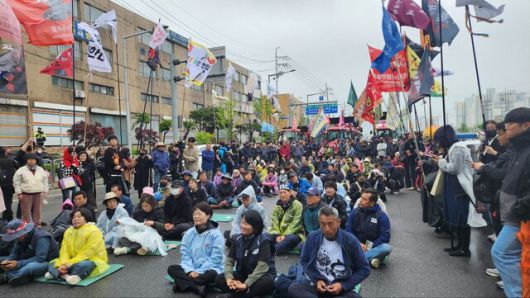 10일 전농에 따르면 트랙터 30여대와 함께 전남·전북·충남 등에서 출발한 전봉준투쟁단 약 50여명은 이날 낮 12시20분께부터 서울 금천구 기아대교 아래 도로에서 약 3시간째 경찰과 대치 중이다. 지난 7일부터 광주·전남, 전북, 충남 등에서 상경길에 오른 이들은 전날 수원에 도착했고, 이날 아침 다시 출발해 낮 12시10분께 경기 안양 지하철 1호선 석수역을 거쳐 서울 금천구에 진입했다.