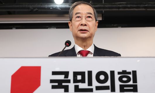 한덕수 전 국무총리가 10일 서울 여의도 국민의힘 중앙당사에서 긴급 기자회견을 하고 있다. 연합뉴스 |