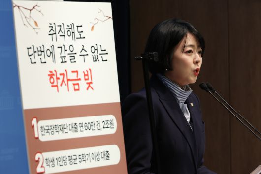 배현진 국민의힘 의원이 지난달 30일 서울 여의도 국회 소통관에서 청년학자금 대출 공약을 발표하고 있다. [연합] |