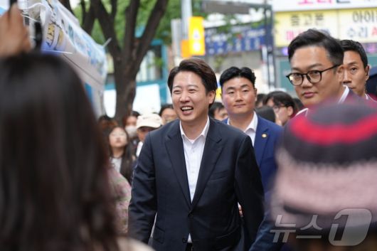 (대구=뉴스1) = 이준석 개혁신당 대통령 후보가 10일 대구 중구 동성로를 찾아 거리버스킹 연설을 하고 있다. (이준석 캠프 제공, 재판매 및 DB 금지) 2025.5.10/뉴스1