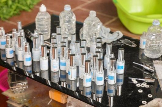 박장성 공안청은 7일 오전, 랑장현 다이럼 마을에 있는 A(29, 남)의 자택을 급습해 화장품을 불법으로 제조·포장하던 A와 공범 B(22, 남)를 현행범으로 체포했다고 밝혔다. 경찰은 현장에서 클렌징 크림, 스킨 로션, 여드름 세럼, 데오드란트, 바디 미스트 등 13가지 종류의 가짜 화장품 약 2500개를 압수했다. 또한 위조 방지 라벨 10만 장, 각종 브랜드 로고 스티커, 용기 1만 개, 포장재 수백만 개도 함께 발견했다. 이들은 출처를 알 수 없는 액체, 향료, 백반 가루 등을 사용했으며, 집 안에는 자동 포장기와 라벨 인쇄기 등 전문 설비도 설치되어 있었다.