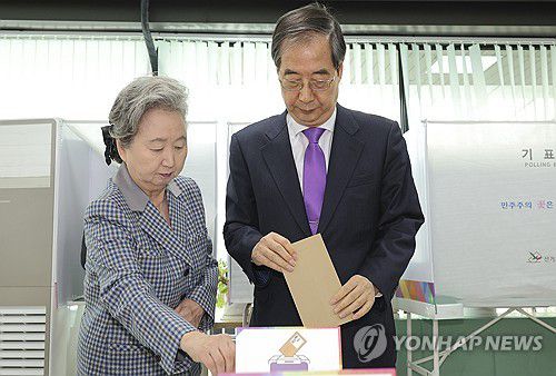 22대 총선 사전투표 첫날, 투표하는 한덕수 총리 내외 |