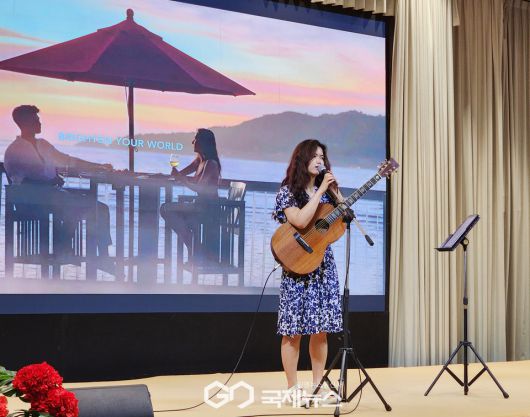 (태국=국제뉴스) 유지현 기자 = 8일 태국 푸켓 로얄푸켓시티호텔에서 열린 '제2회 트래블페어 in 푸켓' 행사에서 한국의 싱어송라이터 강예영이 자작곡을 포함한 블랙핑크, 방탄소년단 등 K-POP 명곡과 태국 인기곡을 공연했다.