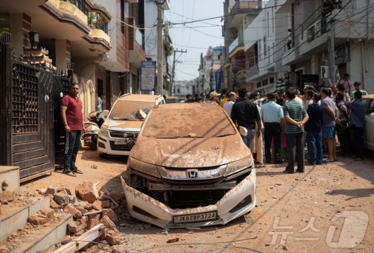 10일(현지시간) 인도 잠무에서 파키스탄군의 공격으로 민간 차량이 피해를 입은 모습. 25.05.10 ⓒ 로이터=뉴스1 ⓒ News1 김예슬 기자 |