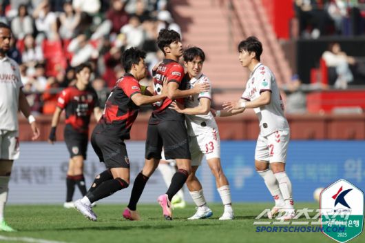 김은중 감독도 승부수를 띄웠다. 후반 25분 많이 뛴 노경호 대신 1m92 장신의 최치웅을 투입했다. 2001년생 공격수의 K리그1 데뷔전이었다. 싸박과 트윈타워가 가동됐다. 후반 26분 최치웅의 첫 헤더가 포항 골키퍼 황인재에게 잡혔다. 후반 27분 이재원의 슈팅이 또 한번 골키퍼 품을 향했다.
