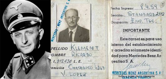 ▲ 1940년대 친위대 중령 시절의 아이히만과 1959년 ‘리카르도 클레멘트’라는 이름으로 취업한 메르세데스-벤츠 트럭 공장의 신분증.Ⓒ위키미디어 |
