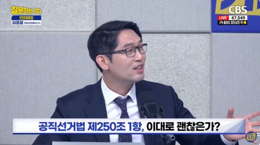 이에 대해 김 교수는 "그 영국 사례조차 아주 희귀한 사례"라며 "사실상 그런 선거법은 적용도 안 되는 사문화된 것일 뿐만 아니라 엄격하게 적용되도록 줄여놓은 것"이라고 말했다.
