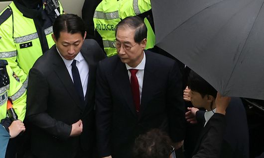 한덕수 대선 예비후보가 10일 긴급 기자회견을 위해 서울 여의도 국민의힘 중앙당사에 들어서던 중 김문수 후보 지지 및 국민의힘 규탄 집회 참가자들의 항의를 받고 있다. 연합뉴스 |