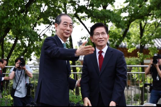 국민의힘 김문수(오른쪽) 대선 후보와 한덕수 대선 예비후보. 2025.5.8 공동취재 |
