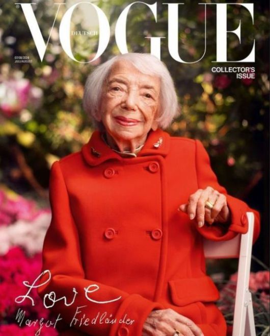 나치 강제수용소에서 살아남아 인종주의 반대 운동 등을 펼쳤던 마르고트 프리틀렌더가 지난해 102세의 나이로 세계적인 패션잡지 '보그' 독일판의 표지를 장식했다. 보그 |