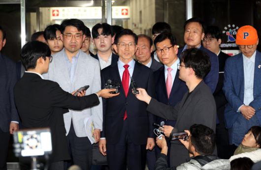 국민의힘으로부터 대통령선거 후보 자격이 취소된 김문수 전 후보가 10일 서울남부지법에서 후보 선출취소 효력정지 가처분 심문기일에 출석을 마치고 입장발표를 하고 있다. 뉴시스 |