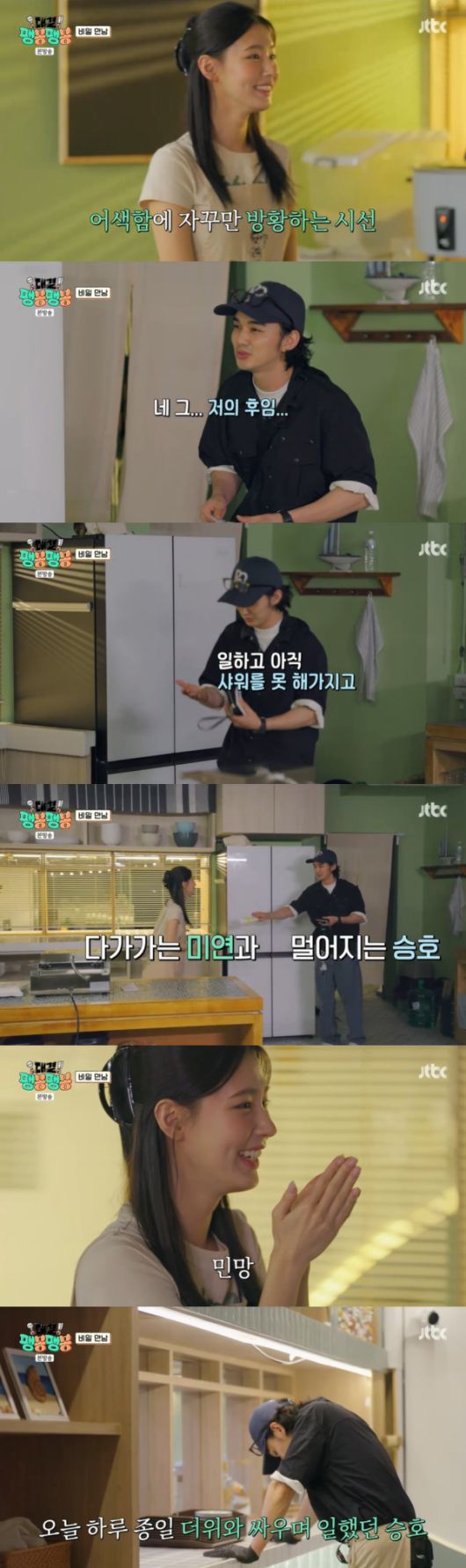 그는 미연과 눈도 제대로 못 마주치고 멀리서 "일하고 아직 샤워를 못해가지고"라며 종이를 건넸다. 미연은 "왜 무서워 하세요"라며 웃었다.