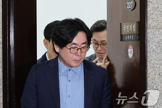 (서울=뉴스1) 안은나 기자 = 한덕수 국민의힘 대선 예비후보 대리인인 윤기찬 정책 대변인과 손영택 전 총리비서실장이 10일 서울 여의도 국회에서 김문수 후보 측과 단일화 협상 관련 회동을 마친 뒤 브리핑을 하기 위해 회의실을 나서고 있다. 2025.5.10/뉴스1
