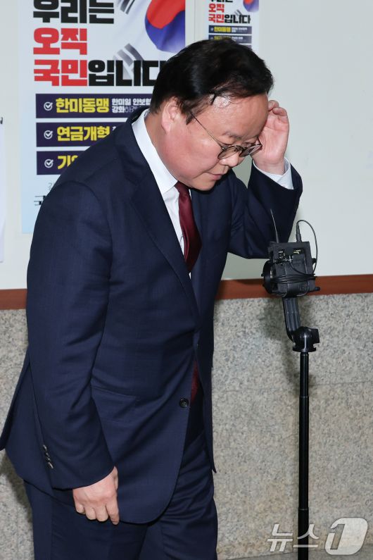 (서울=뉴스1) 안은나 기자 = 김문수 국민의힘 대통령 후보 대리인인 김재원 비서실장이 10일 서울 여의도 국회에서 한덕수 예비후보 측과 단일화 실무 협상 관련 회동과 브리핑을 마친 뒤 이석하고 있다. 2025.5.10/뉴스1coinlocker@news1.krCopyright ⓒ 뉴스1. All rights reserved. 무단 전재 및 재배포, AI학습 이용 금지.