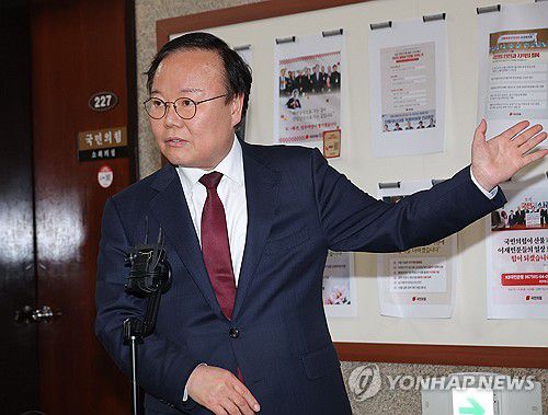 김 후보 측 김재원 비서실장은 기자들과 만나 "나경원·박대출 의원 등으로부터 '50%는 역선택 방지 조항이 없는 여론조사, 50%는 역선택 방지 여론조사를 실시하면 공평하지 않나. 타협할 생각이 없는가'라는 간곡한 요청이 있어서 (입장을) 정리해서 이 자리에 왔다"고 밝혔다.
