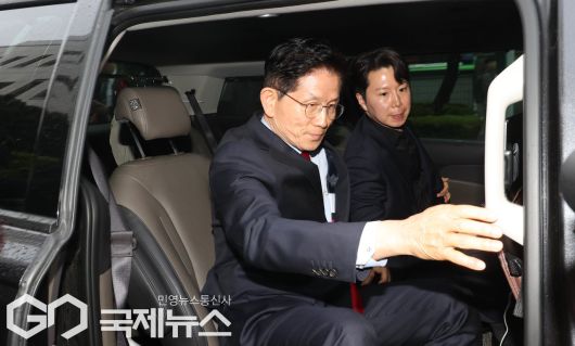 (서울=국제뉴스) 국민의힘으로부터 대통령선거 후보 자격이 취소된 김문수 후보가 10일 오후 서울 양천구 남부지방법원에서 후보 선출취소 효력정지 가처분 심문기일에 출석을 마치고 차량에 오르고 있다./사진=이용우 기자