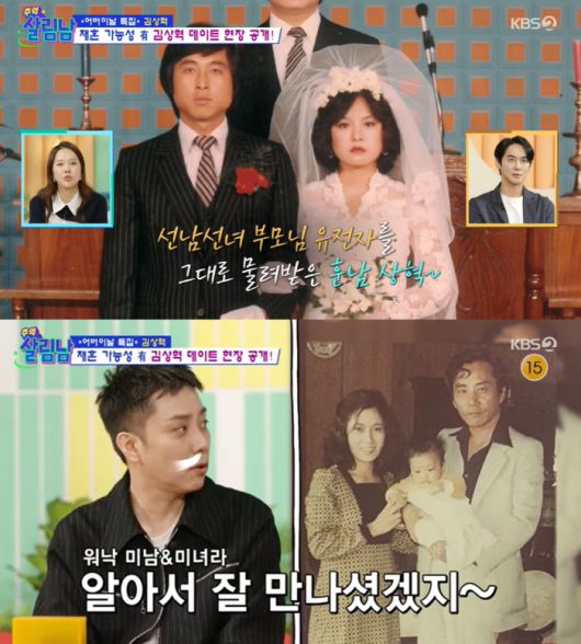 이어 "그 아이스크림 사러 가는 5분 동안 대화를 하는데 '주말에 뭐해요?' 하길래 '금싸라기 같은 날인데 데이트해야죠' 했더니 픽 웃으면서 내 손목을 잡더라"라 했다. 김상혁의 부모님은 옛날 사진에도 대단한 비주얼로 감탄을 자아냈다.