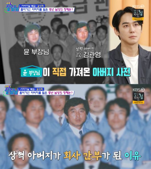 김상혁은 "좀 많이 놀랐다. 저 뒤에서 아버지가 같이 걸어올 것 같고"라며 눈물을 참지 못했다. 김상혁도 몰랐던 아버지의 사진을 가져온 동료는 "너네 아버지가 제일 미남이다"라며 아버지와의 추억을 전해줬다.