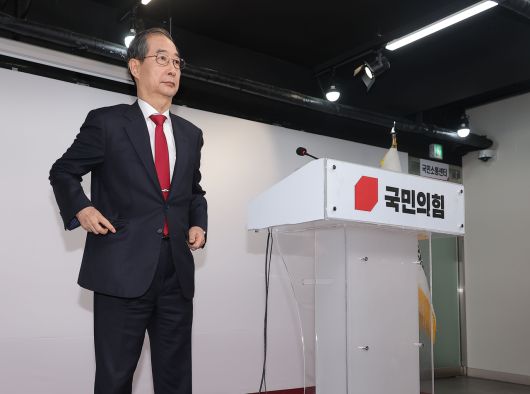 한덕수 대선 예비후보가 10일 서울 여의도 국민의힘 중앙당사에서 열린 긴급 기자회견에 참석하고 있다. <연합> |