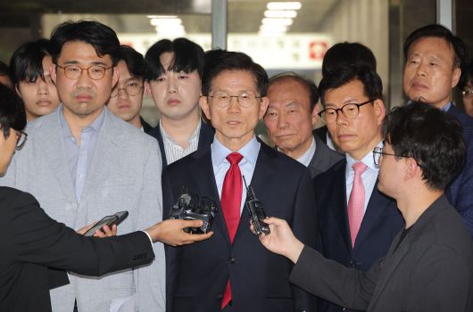 김문수 국민의힘 대선 후보가 10일 서울 양천구 서울남부지방법원에서 열린 당의 후보 선출 취소 가처분신청 사건 심문 기일에 출석한 뒤 법정을 나서며 발언하고 있다. [연합] |