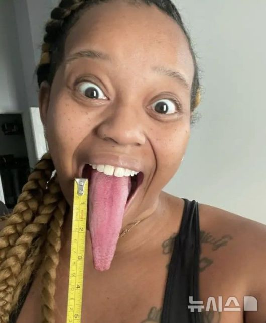 [서울=뉴시스] 강세훈 기자 = 세계에서 가장 긴 혀 기록을 가진 여성의 모습이 공개돼 화제다.