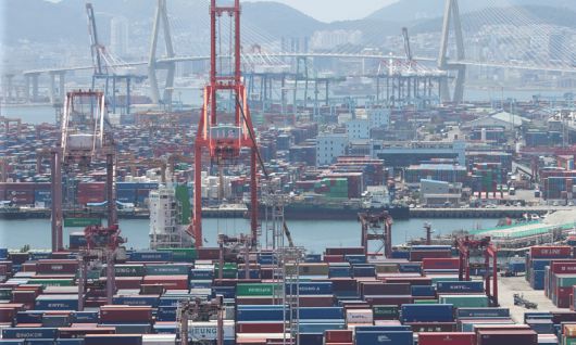 부산 남구 용당부두에 컨테이너들이 잔뜩 쌓여있다. 뉴스1 |