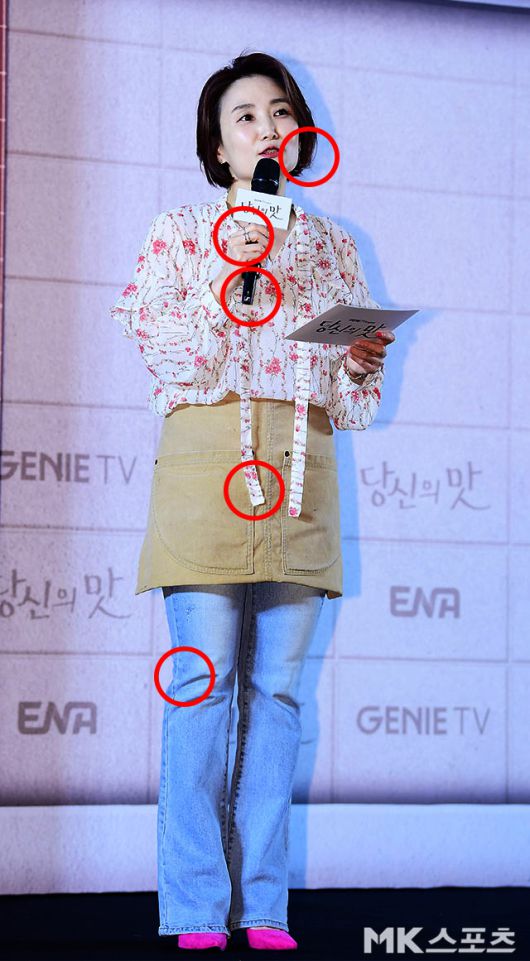 박경림은 이날 행사에서 화사한 플라워 패턴 블라우스와 연청 부츠컷 데님에 핫핑크 힐을 매치해 포인트를 주었습니다.