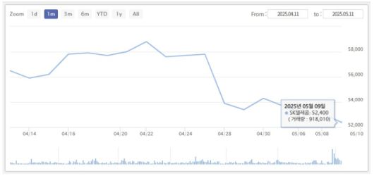 이달 9일 SKT 주가는 전일 대비 1.32% 하락한 5만2400원에 마감했다. 사태 발발 이후 최저가다. 이에 개인투자자들 사이에선 SKT의 최근 주가 하락으로 인한 시가배당률 상승에 주목하는 분위기가 형성됐다.