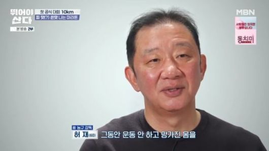 허재는 10일 방송된 MBN 예능프로그램 '뛰어야 산다'에서 10㎞ 마라톤에 도전했다. 이 프로그램은 마라톤에 도전하는 이들의 이야기를 담는다.