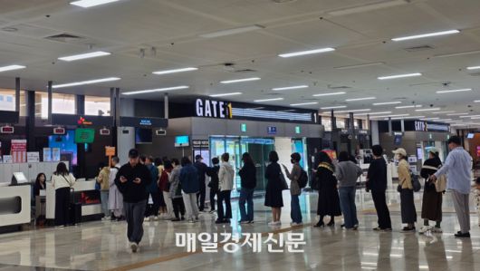 SK텔레콤 가입자식별장치(USIM) 데이터 유출 사건으로 유심 무상 교체가 본격 시작된 지난 4월 28일 김포국제공항 로밍센터에 긴 대기줄이 형성됐다. [이가람 기자] |