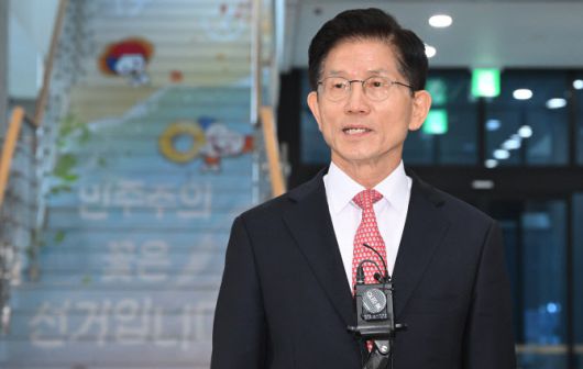 [이데일리 노진환 기자] 김문수 국민의힘 대선 후보가 공식 선거운동 개시를 하루 앞둔 11일 경기 과천시 중앙선거관리위원회에서 후보자 등록을 마친 뒤 취재진의 질의에 답하고 있다.