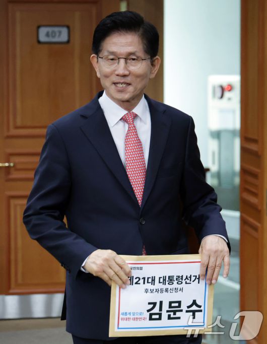 (과천=뉴스1) 오대일 기자 = 김문수 국민의힘 대통령 후보가 11일 오전 경기 과천시 중앙선거관리위원회에서 제21대 대통령선거 후보자 등록을 위해 입장하고 있다. (공동취재) 2025.5.11/뉴스1kkorazi@news1.krCopyright ⓒ 뉴스1. All rights reserved. 무단 전재 및 재배포, AI학습 이용 금지.