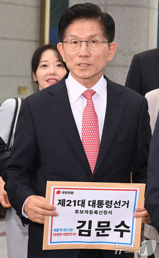 (과천=뉴스1) 오대일 기자 = 김문수 국민의힘 대선 후보가 공식 선거운동 개시를 하루 앞둔 11일 경기 과천시 중앙선거관리위원회에 도착해 후보자 등록 서류 접수처로 향하고 있다. (공동취재) 2025.5.11/뉴스1kkorazi@news1.krCopyright ⓒ 뉴스1. All rights reserved. 무단 전재 및 재배포, AI학습 이용 금지.