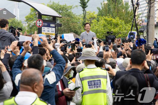 (화순=뉴스1) 이재명 기자 = 경청투어에 나선 이재명 더불어민주당 대통령 후보가 11일 오전 전남 화순군 화순읍 화순교 일대에서 연설을 하고 있다. 2025.5.11/뉴스12expulsion@news1.krCopyright ⓒ 뉴스1. All rights reserved. 무단 전재 및 재배포, AI학습 이용 금지.