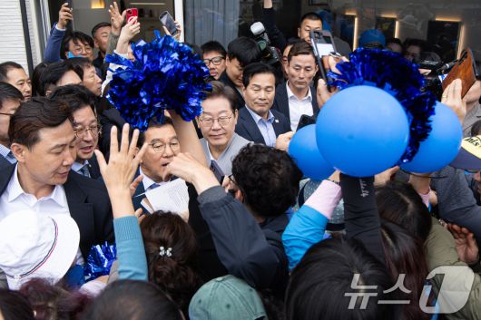 (화순=뉴스1) 이재명 기자 = 경청투어에 나선 이재명 더불어민주당 대통령 후보가 11일 오전 전남 화순군 화순읍 화순교 일대에서 시민들과 인사를 나누고 있다. 2025.5.11/뉴스12expulsion@news1.krCopyright ⓒ 뉴스1. All rights reserved. 무단 전재 및 재배포, AI학습 이용 금지.