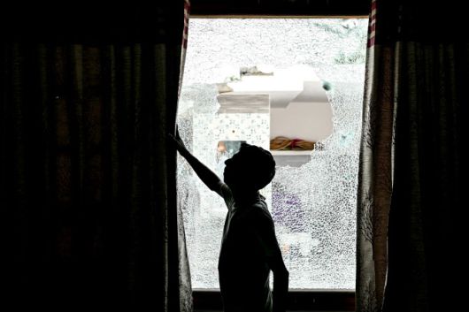 10일(현지시간) 인도 잠무 카슈미르 지역의 국경 근처에 위치한 아르니아(Arnia) 마을에서 한 남성이 국경을 넘은 포격으로 산산이 부서진 주택의 창문을 보여주고 있다. (사진=AFP) |