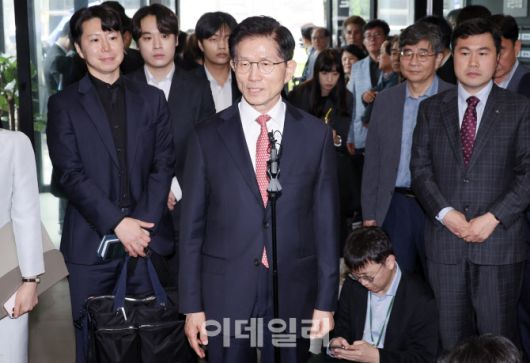 [이데일리 방인권 기자] 한덕수 전 국무총리와 단일화 갈등 끝에 당으로부터 후보 교체 직전까지 갔던 김문수 국민의힘 대선 후보가 11일 서울 여의도 국민의힘 대선후보 사무실로 향하며 취재진의 질의에 답하고 있다.