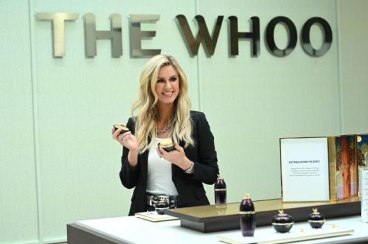 7일(현지시간) 미국 뉴욕 더 셰드의 '더후 라운지'에 방문한 니키 힐튼이 더후의 환유 제품을 들고 활짝 웃고 있다. [사진= LG생활건강] |