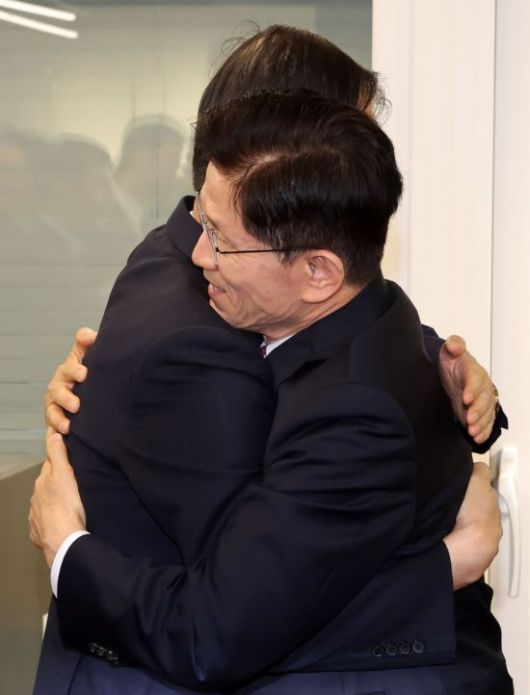 김문수 국민의힘 대선후보와 한덕수 전 국무총리가 11일 만나 협력 방안을 논의했다. 국민의힘 지도부의 후보 교체 속에 후보 지위가 엇갈릴 뻔했던 두 사람은 '포옹'하며 협력 의지를 확인했다.