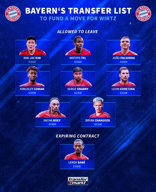 축구 통계 매체 '트랜스퍼마크트'는 10일(한국시간) 다가오는 여름 뮌헨의 매각 후보를 공개했다. 총 9명의 후보가 이름을 올렸는데 김민재도 포함됐다.
