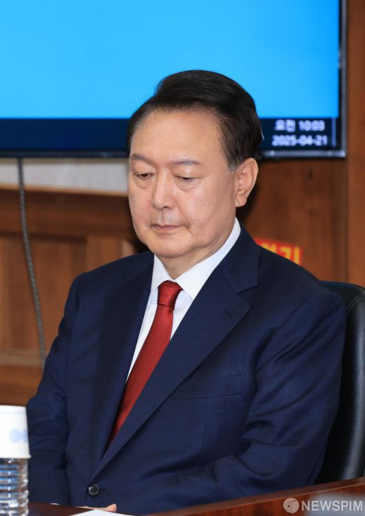 [서울=뉴스핌] 사진공동취재단 = 12·3 비상계엄을 선포해 내란 우두머리 혐의로 재판에 넘겨진 윤석열 전 대통령이 21일 오전 서울 서초구 서울중앙지법 417호 법정에 출석해 재판을 받기 위해 기다리고 있다. 2025.04.21 photo@newspim.com |