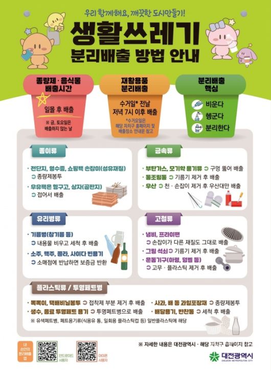 이에 따라 대전시는 다음과 같은 맞춤형 홍보·교육 전략을 통해 분리배출 문화 정착을 유도할 방침입니다.