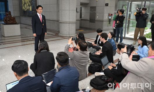 아시아투데이 이병화 기자 = 김문수 국민의힘 대통령 후보가 11일 오전 경기 과천시 중앙선거관리위원회에서 제21대 대통령선거 후보자 등록을 마친 뒤 취재진의 질문에 답하고 있다. ⓒ "젊은 파워, 모바일 넘버원 아시아투데이"