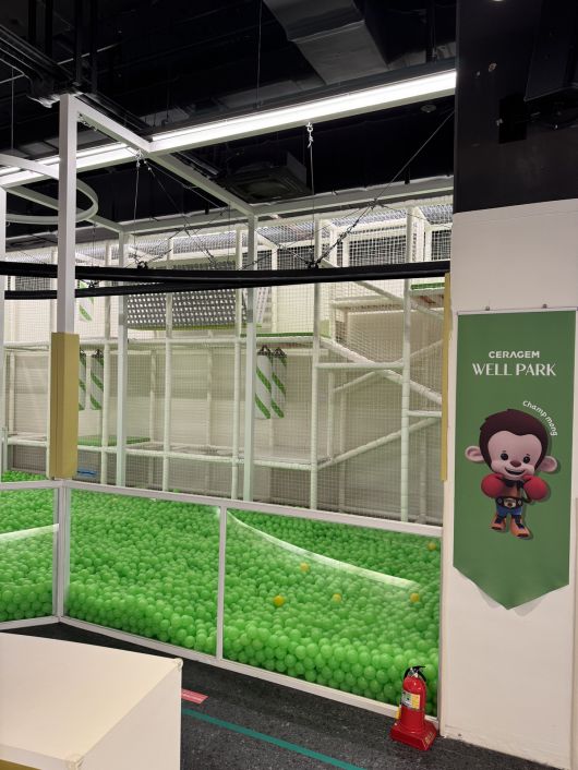 웰파크는 키즈카페와 건강관리 체험을 결합한 신개념 공간이다. 헬스케어 가전 전문기업 세라젬이 키즈 콘텐츠 기업 씨엠지월드와 손잡고 만든 ‘헬스테인먼트’ 복합문화공간으로, 아이들의 놀이와 부모의 휴식을 동시에 만족시킨다.