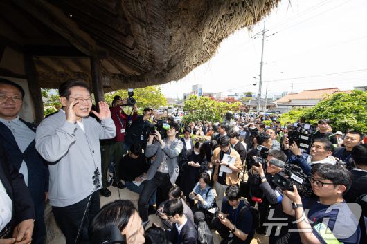 경청투어에 나선 이재명 더불어민주당 대통령 후보가 11일 오후 전남 강진군 강진읍 사의재를 찾아 시민들에게 인사말을 하고 있다. 2025.5.11/뉴스1 ⓒ News1 이재명 기자 |