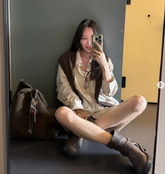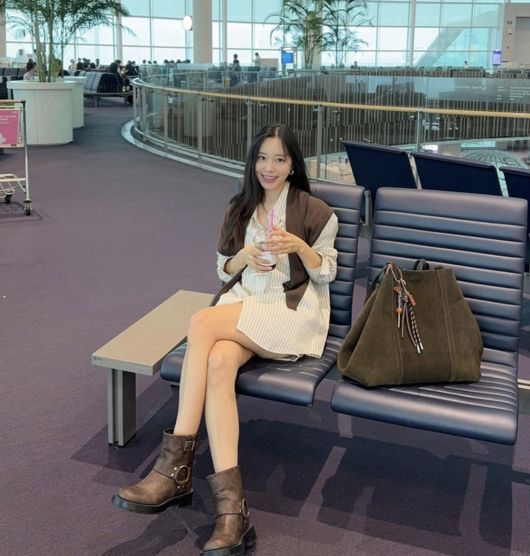 공개된 사진 속 이솔이는 공항 대기석에 앉아 여유로운 시간을 보내고 있는 모습이다. 스트라이프 미니 원피스에 짙은 갈색 가디건을 가볍게 걸친 그는, 발목까지 오는 빈티지한 워커 부츠로 포인트를 더해 편안하면서도 감각적인 공항 패션을 완성했다.