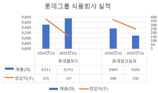 [이데일리 노희준 기자] 롯데그룹 식품회사들이 1분기(1~3월)에 좋지 못한 실적을 거뒀다. 내수 회복이 지연되는 데다 초콜릿의 원료인 카카오 가격 부담이 지속된 데 따른 여파로 풀이된다. 하반기는 해외 사업 성장과 판가 인상 효과 및 원가 부담 완화가 맞물려 반등이 예상된다.